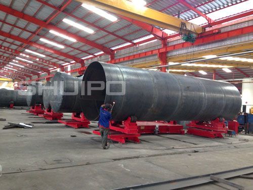 自調(diào)式異形筒體滾輪架是一種適用于焊接管道、容器、油罐等圓筒形 矩形工件的專用焊接輔助機(jī)械,廣泛應(yīng)用在制管業(yè)、壓力容器制造業(yè)、金屬結(jié)構(gòu)焊接加工業(yè)、重型機(jī)械制造業(yè)等的現(xiàn)代加工行業(yè)中。我公司滾輪架的滾輪旋轉(zhuǎn)采用交流電機(jī)驅(qū)動、變頻調(diào)速,具有調(diào)速范圍寬,轉(zhuǎn)動平穩(wěn)性好,低速特性硬等特點(diǎn)。與操作機(jī)、焊接變位機(jī)、埋弧焊機(jī)等設(shè)備配合使用,可對工件進(jìn)行環(huán)縫焊接及縱縫焊接,可提高焊接生產(chǎn)速度并使焊接質(zhì)量保持穩(wěn)定,顯著減少了焊接輔助時(shí)間、降低了工人的勞動強(qiáng)度、改善工作環(huán)境、提高生產(chǎn)率。