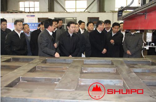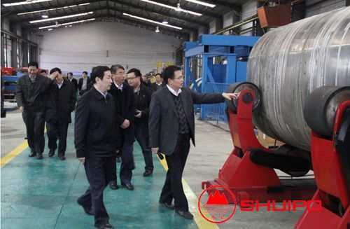 2014年3月12日,山東省委省政府張超超副省長(圖中)一行在市縣領(lǐng)導的陪同下,來公司進行視察、調(diào)研。公司劉憲福董事長向張超超副省長,詳細介紹了“數(shù)控廂板自動焊接機”“異形罐體環(huán)縫TIG自動焊機”等多個公司自主研發(fā)的新產(chǎn)品。